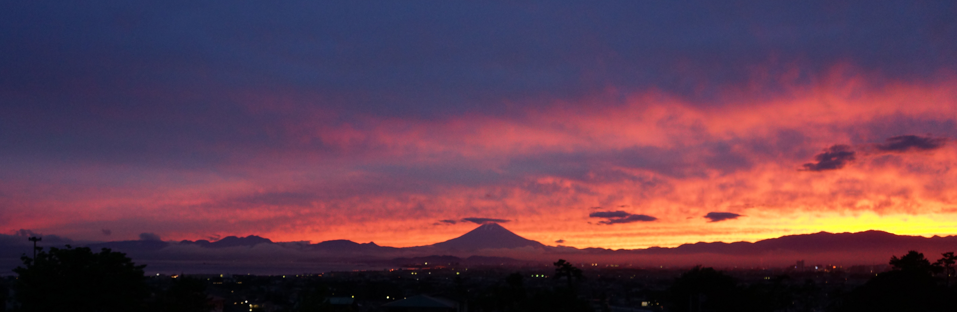 昨日の夕焼けはいつになくきれいでした。富士山のシルエットもくっきりと・・・ (トリミングしています)