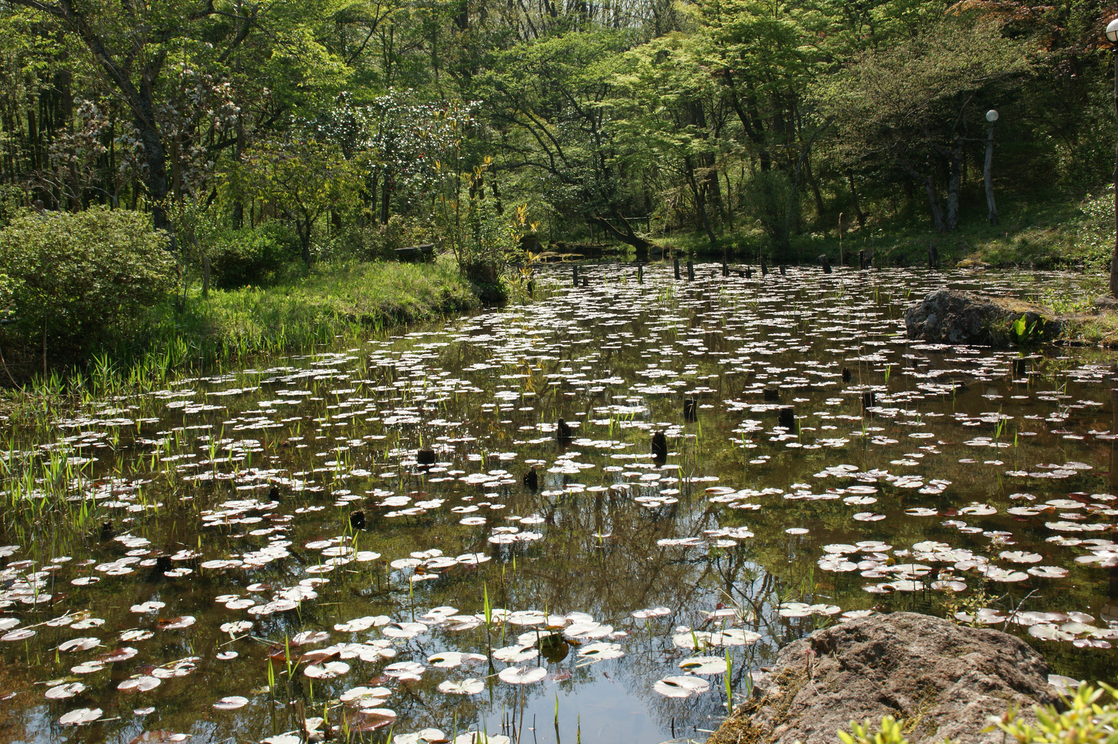 仙台郊外の秋保、お茶会の席庭の池です、 時期が早いのでまだ花を見ることはできませんでした。
