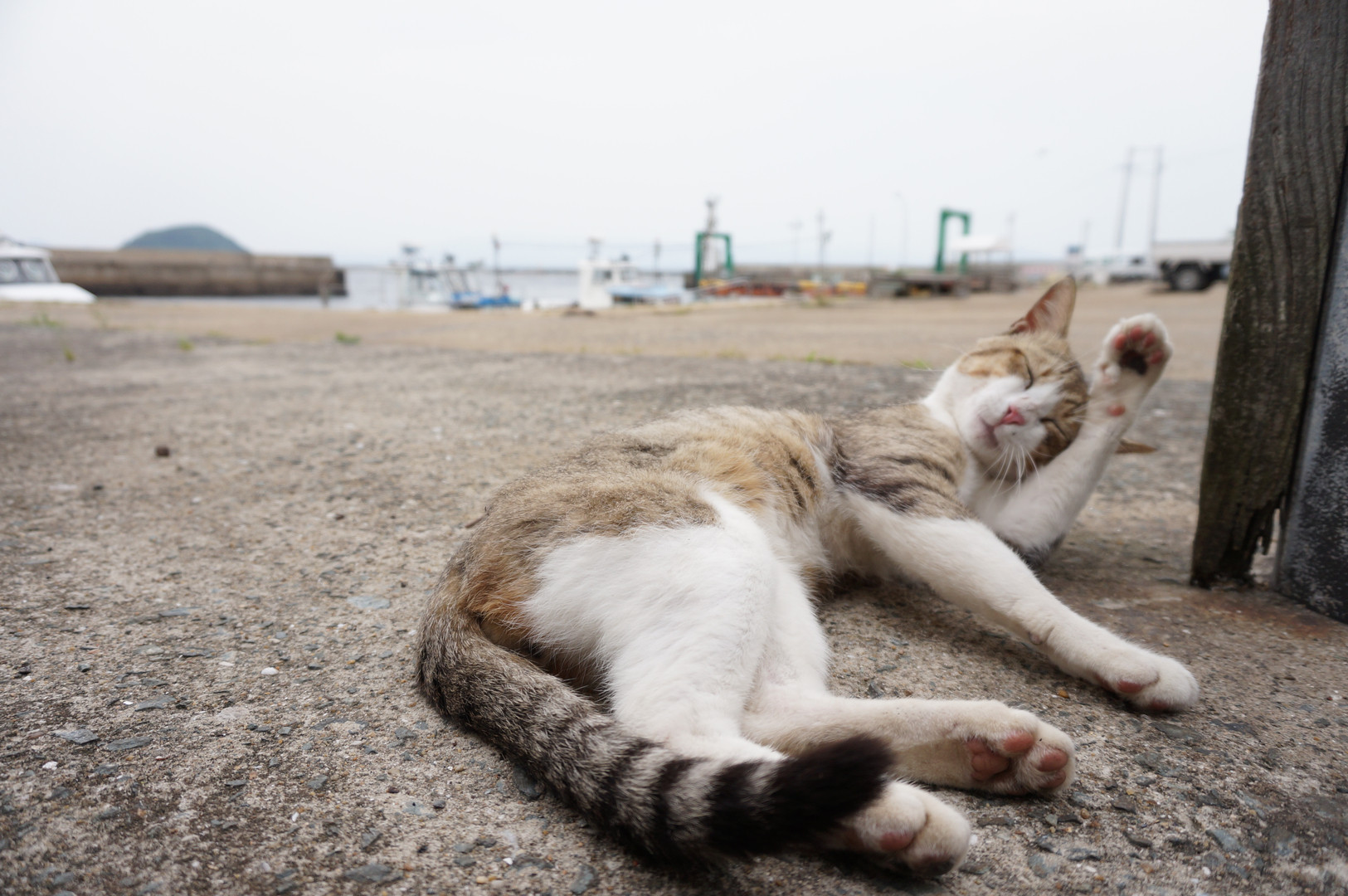相島の猫です。 港でお昼寝です。