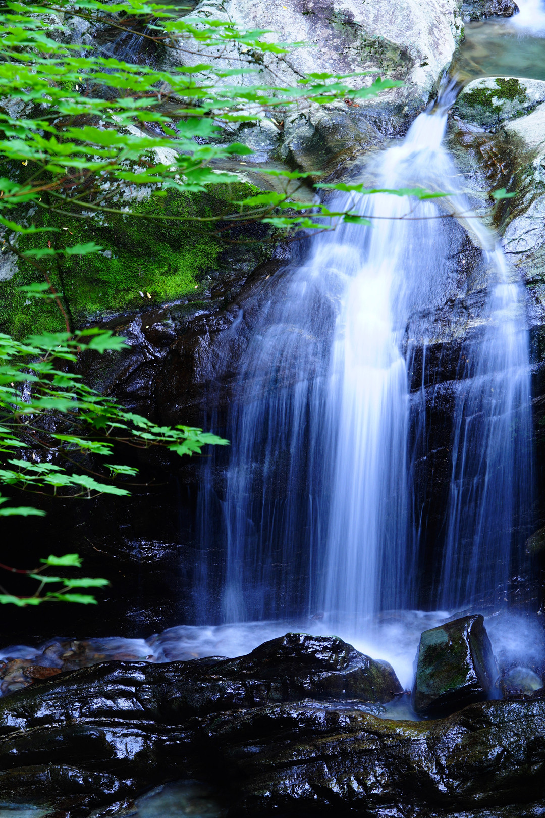 何度も転びそうになりながら、苔の生い茂る岩の上を前進。