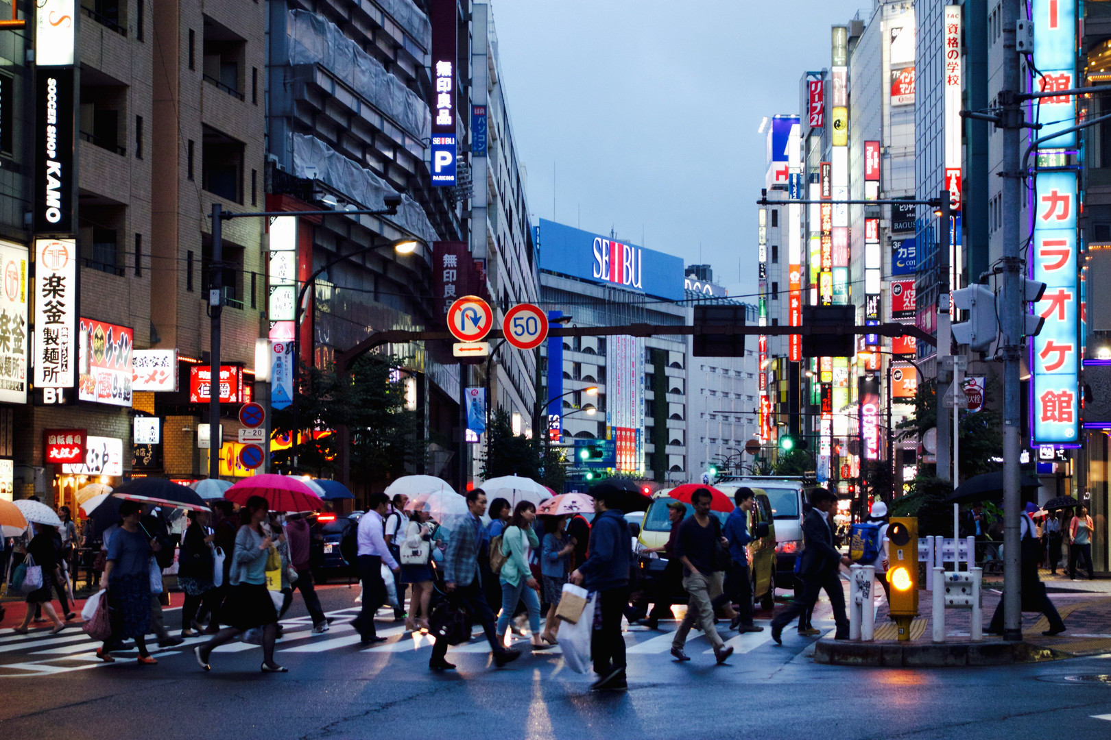 池袋 夕暮れ 雨