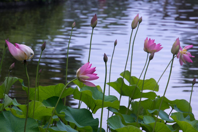 府中市郷土の森公園のハスの花です。この一角だけ早咲きのハスの花が満開でした。