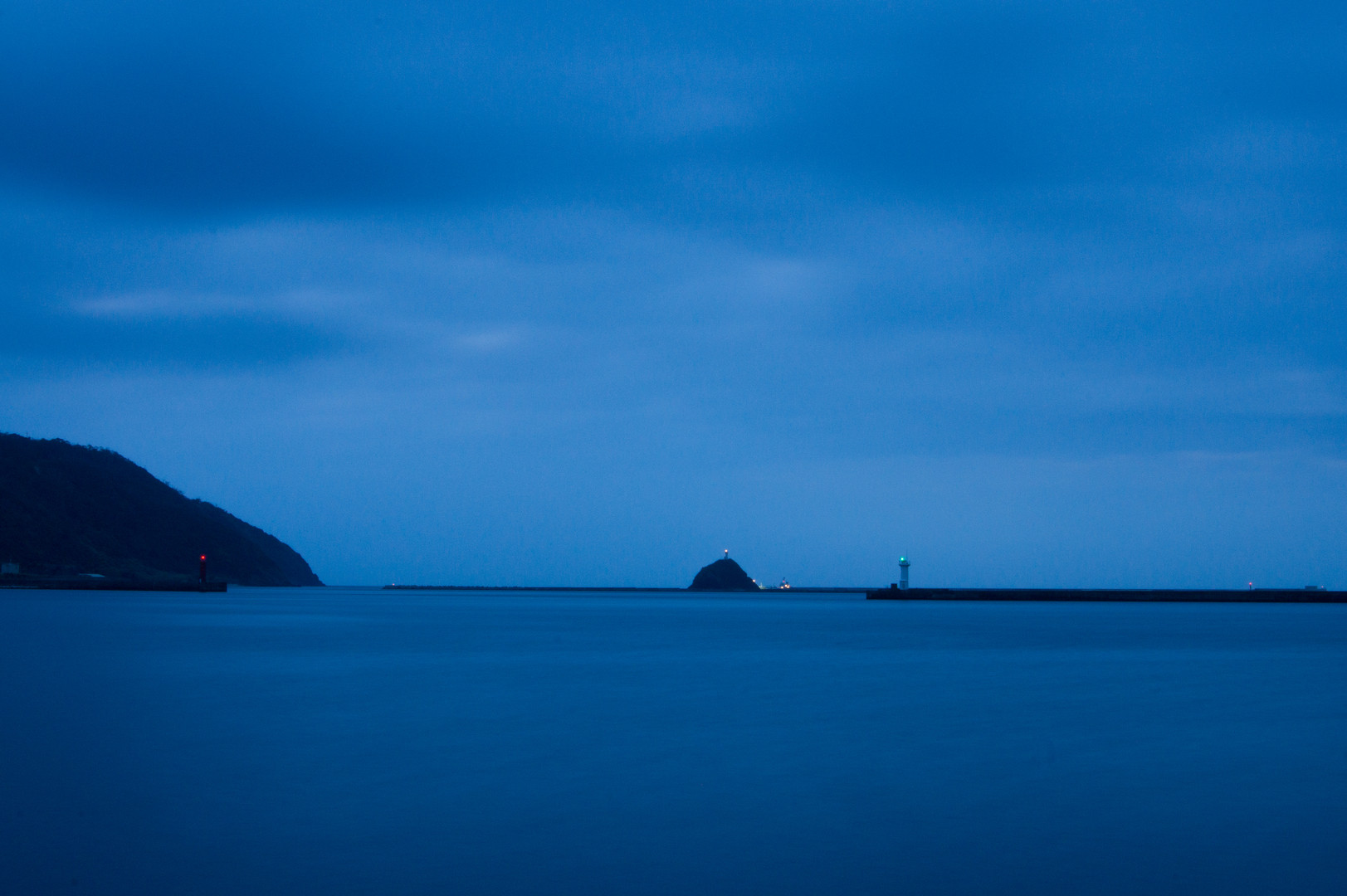 奄美大島より 中央に見える「名瀬立神」と言われる灯台のある岩島。 その灯台も役目を終えるという事で…。