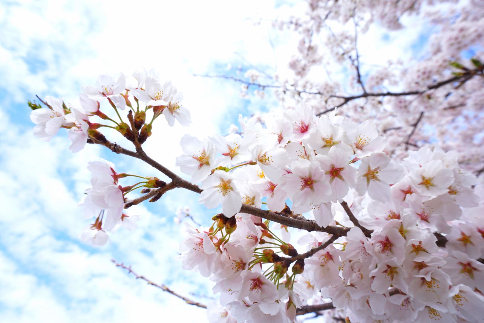 長野県松代城跡の桜です。 雨予報の一日でしたが、晴れ間がみえた気持ちのいい空と一緒に。