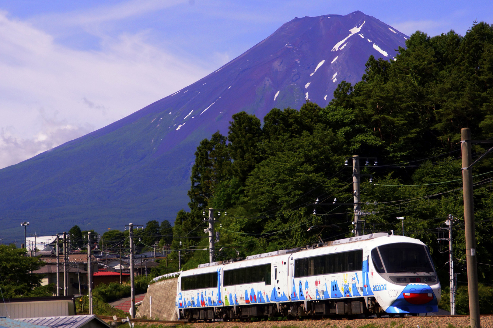 製品情報>My Sony>αcafe>残雪の富士山と富士急のお蚕様?(フジサン特急)(行者にんにくさん)