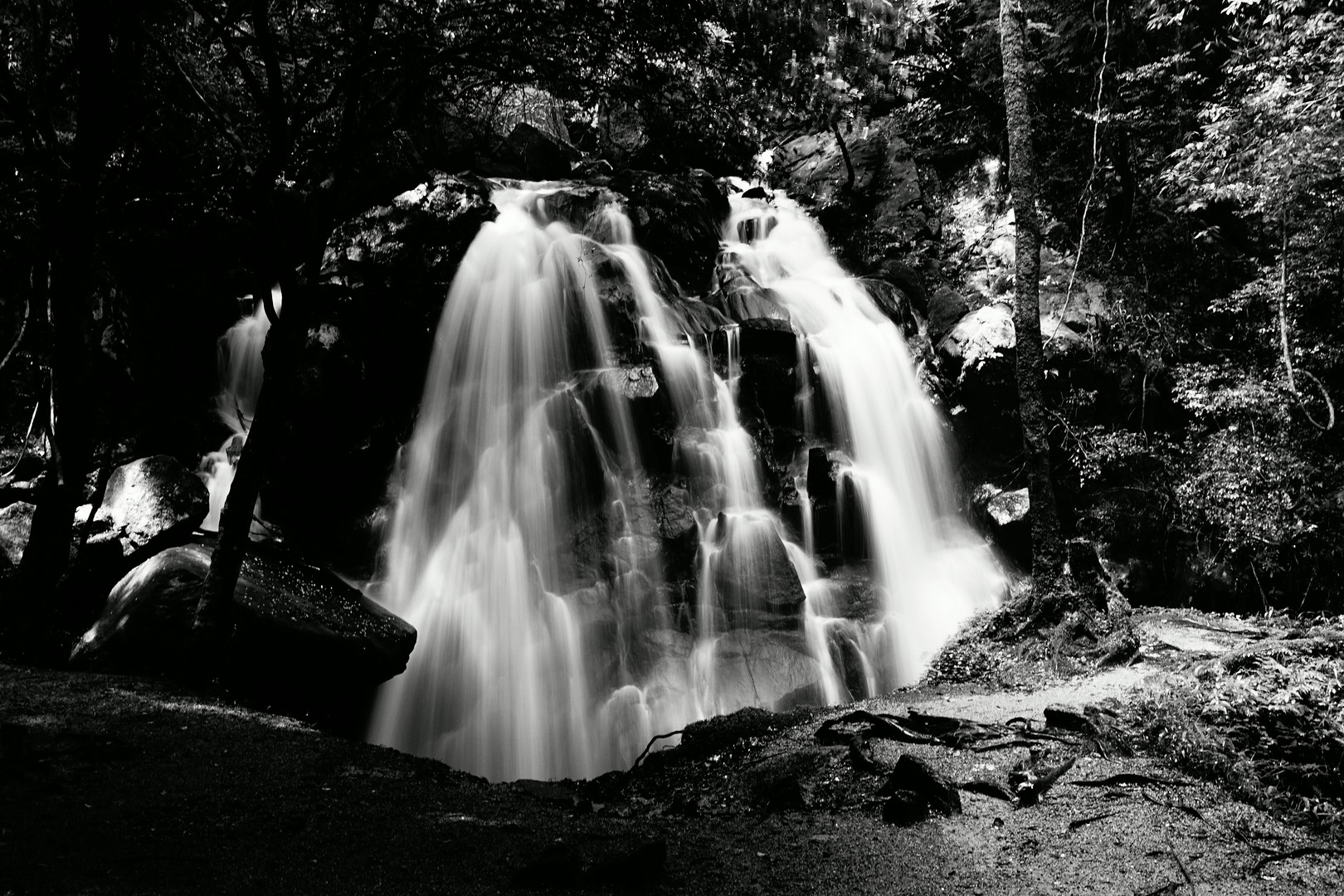 静寂の中水量が多い梅雨時、勢いよく水が落ちてくる。