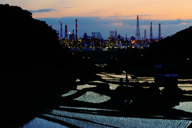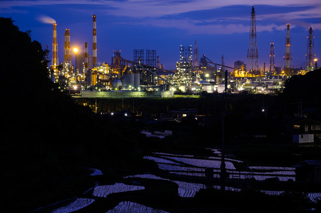 棚田とコンビナート