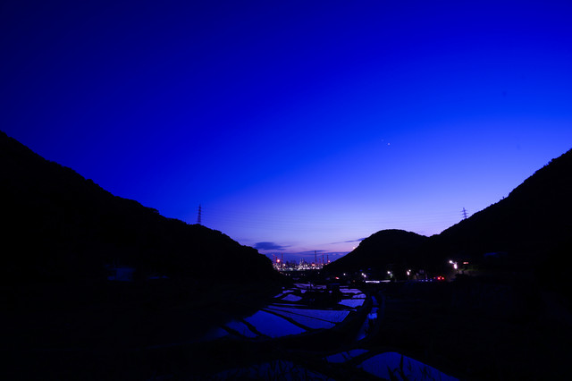 棚田・水島コンビナート・夕焼けのコラボを撮りに行きましたが、当日は残念ながら焼けませんでした。