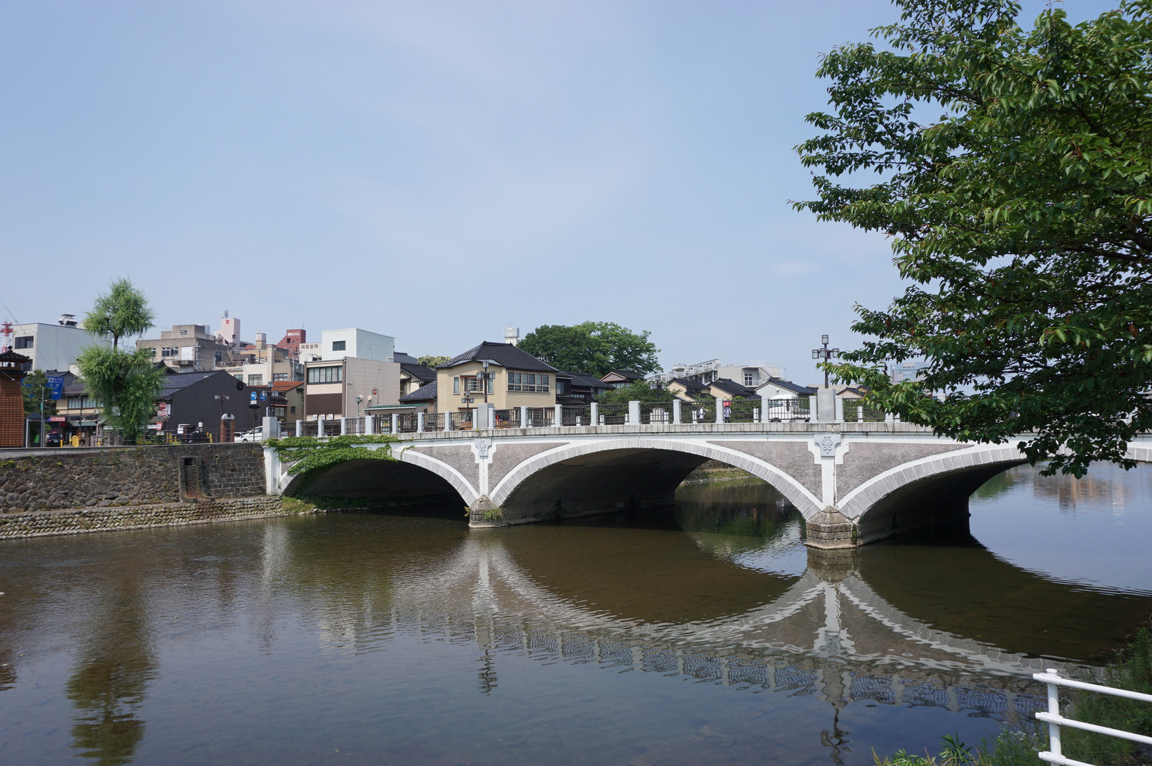 流れも穏やかな浅野川に映る影が撮れました (^^)