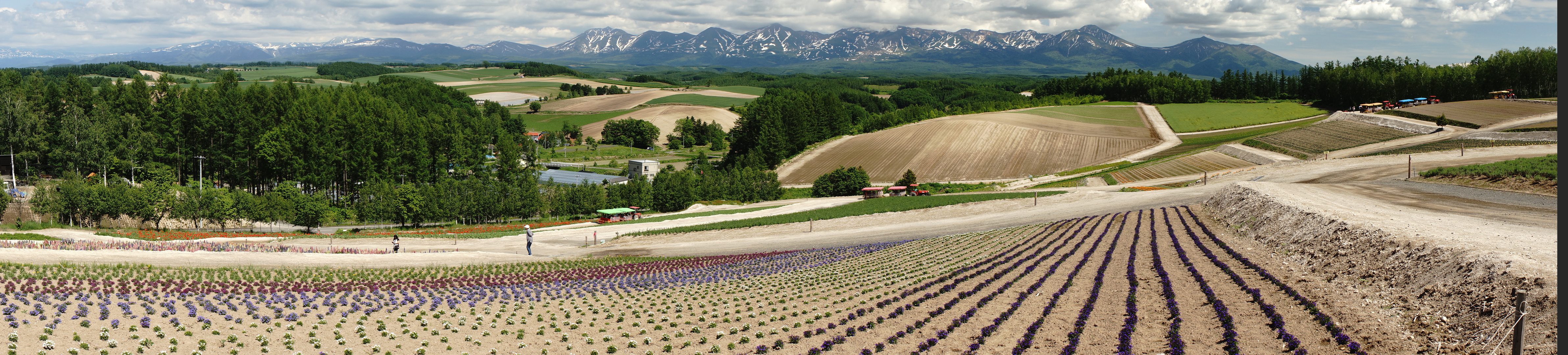 富良野色彩の丘パノラマ 雄大な景色、花でいっぱいになるのでしょう