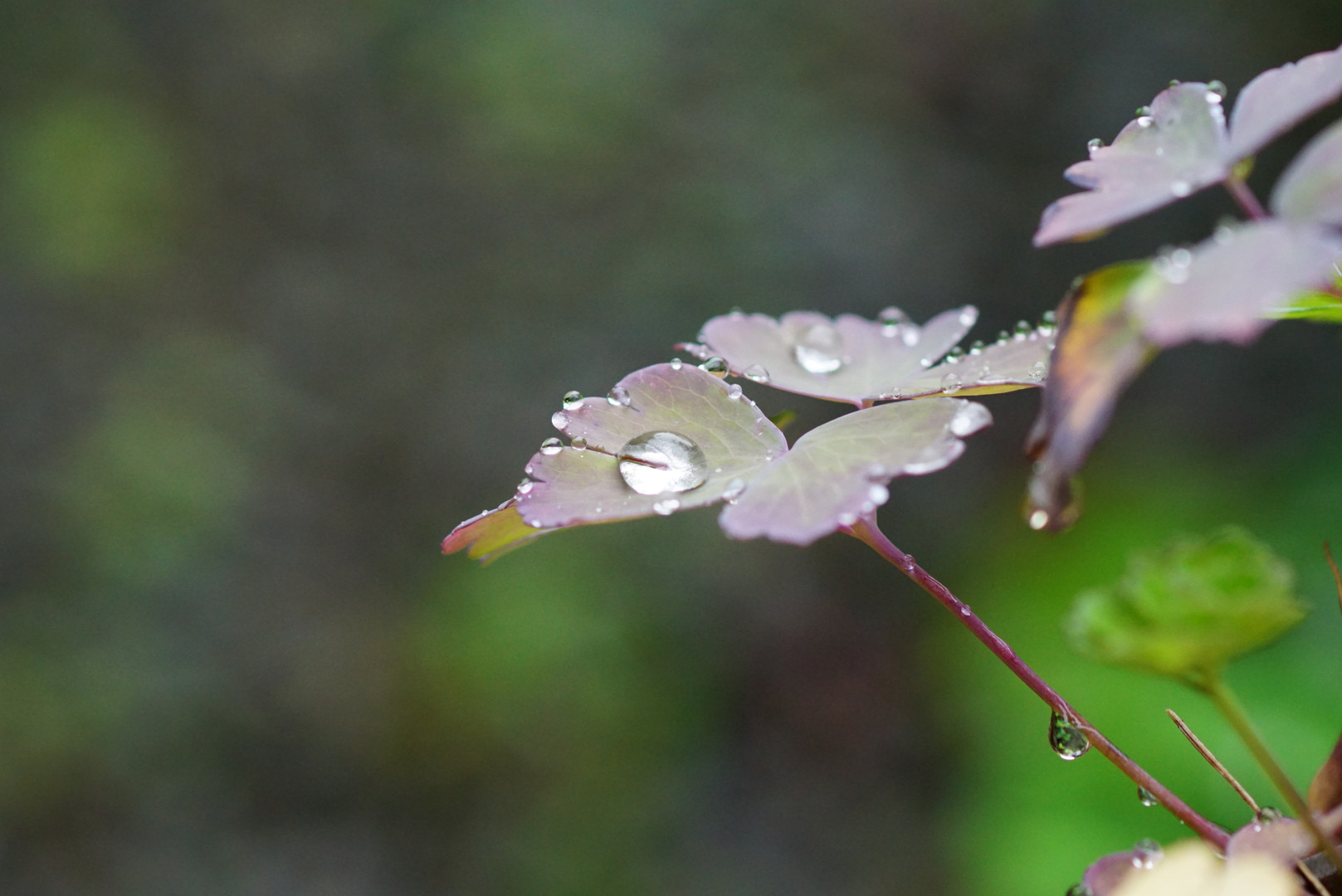 オダマキの小さな葉の上にまるく光っていた