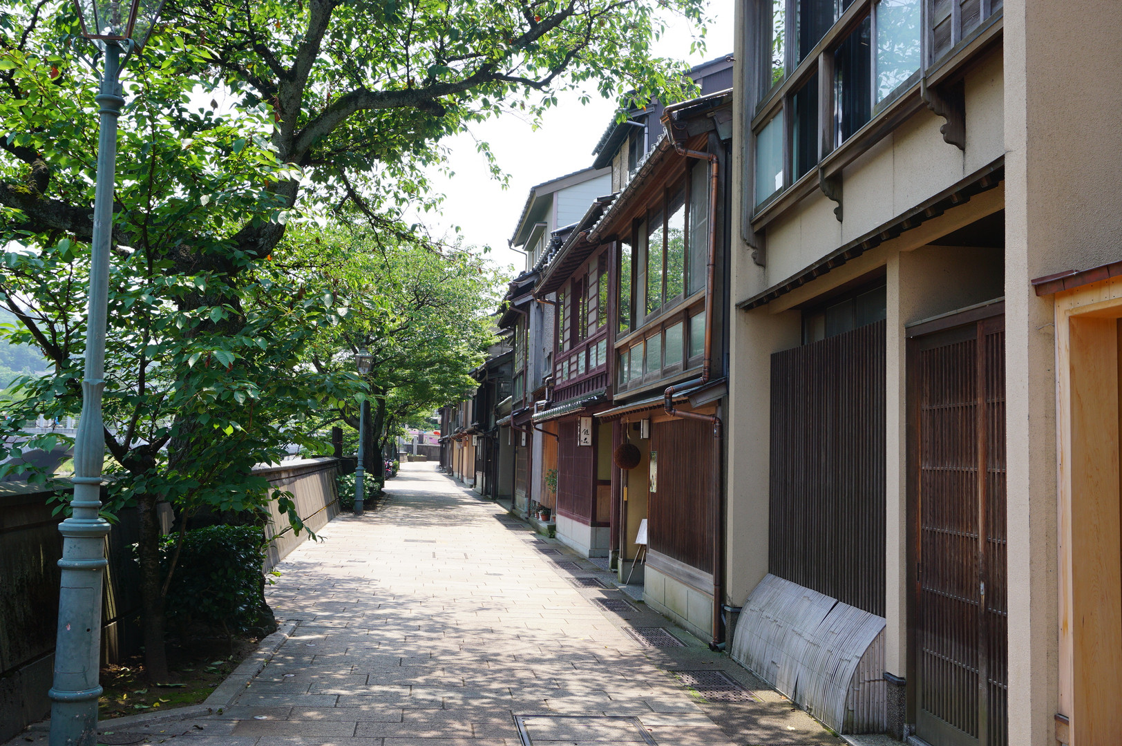 金沢市の浅野川沿いにある主計町は、昔の茶屋街。浅野川左岸にある東の廓には観光客の姿もありましたが、こちら側はひっそりとしていました。