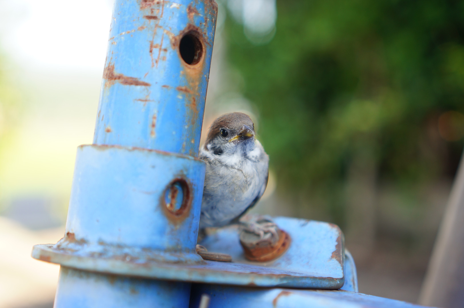 小雀がトラクターの上にとまっていました。