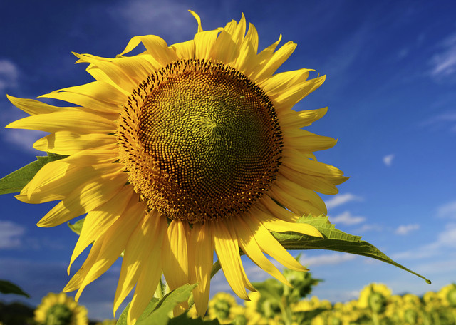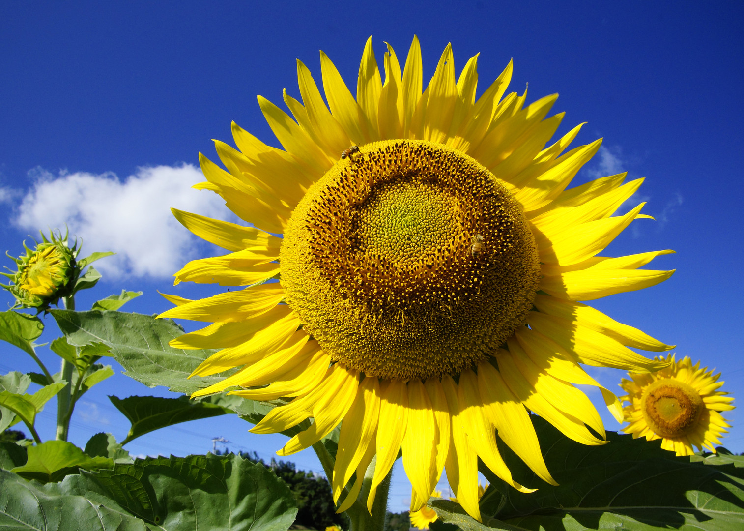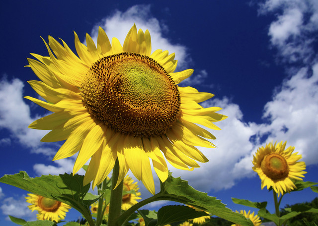 中でも、青空に太陽に向かって輝くデカイ顔の花を撮りました。
