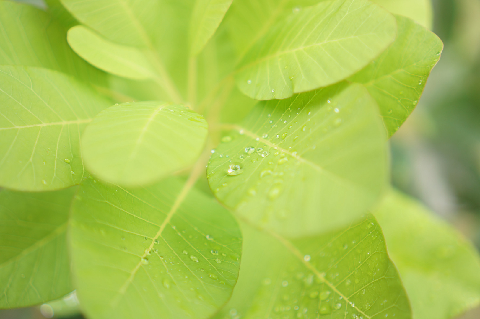 枝の先に新たに伸びた新緑の葉が、雨の水滴の輝きで自分を輝かせていました。