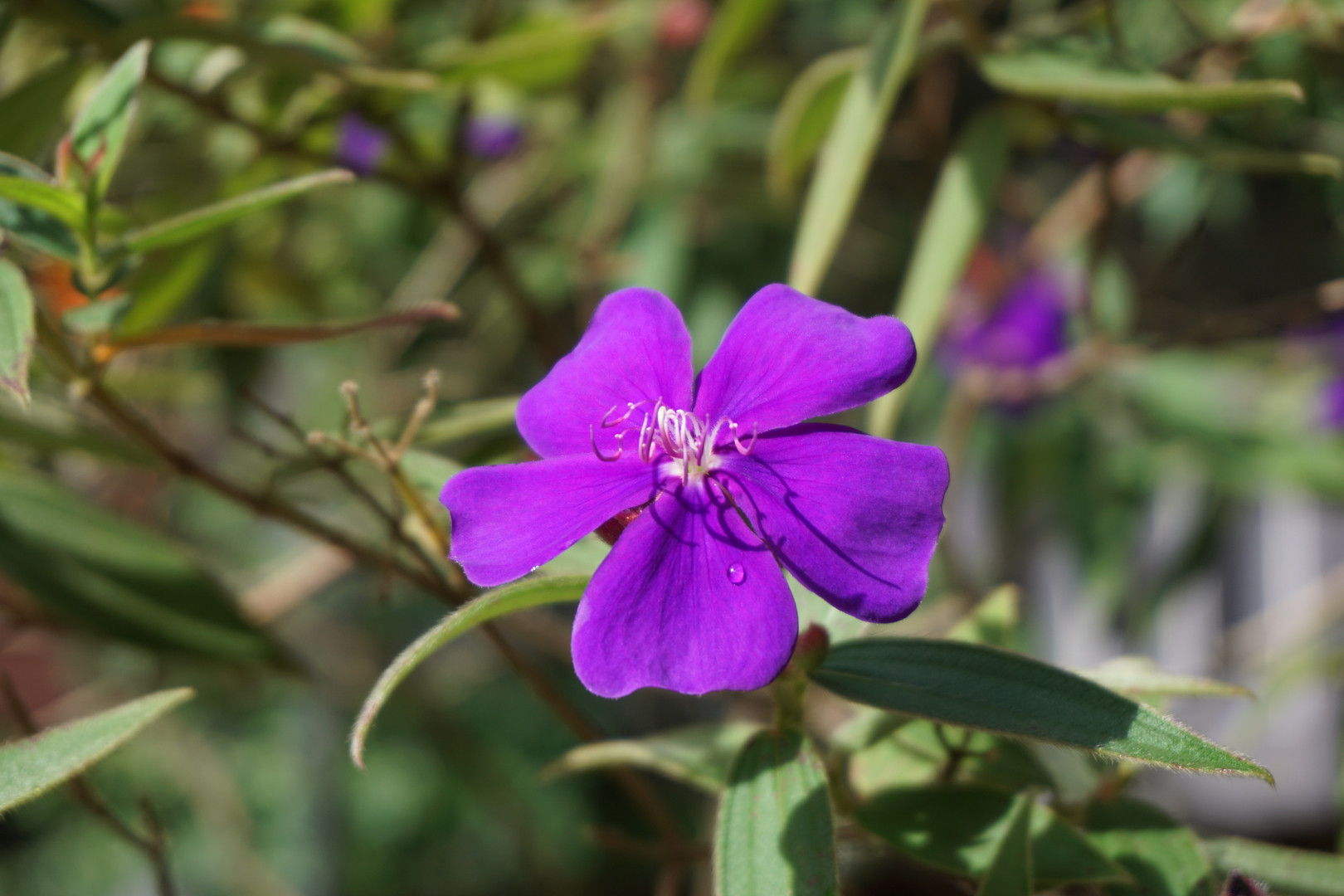 まだ朝露の残るシコンノボタン。この花って光の角度や写真の摂り方で色が全然変わってしまいますが、目視ではこれよりもう少し青みが強いように見えました。