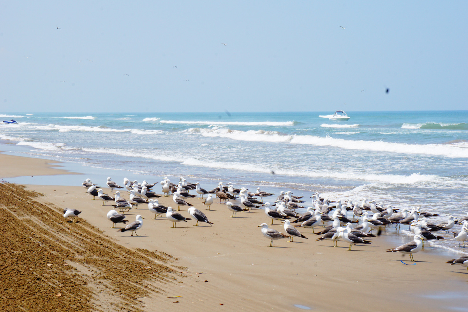 車が通れるなぎさです。 横にはかもめたち。平和です。