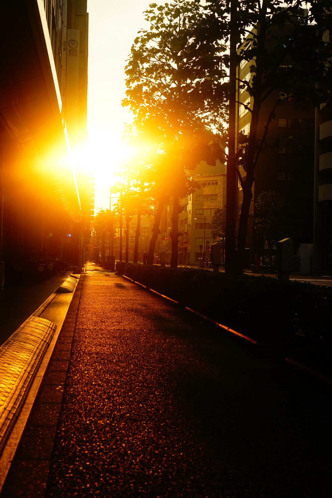 築地に行くために朝早くホテルを出た時に朝焼けの街が綺麗だったので