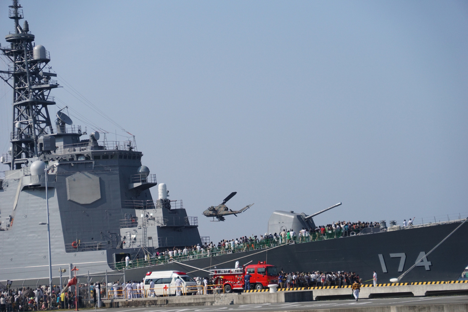 今日はこれ位にしてやるか!? とAH-1が言っていた? 実戦ではこんな近距離、敵味方でしたら有り得ないシュチュエーションです。 自衛隊の皆さん、暑い中御苦労でした。