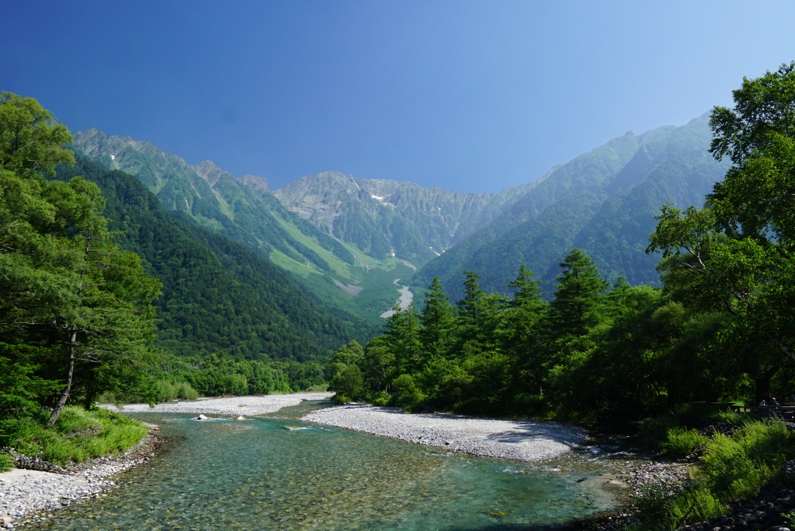 念願の上高地へ。天気も晴天、早朝の空気が気持ちよかったです。