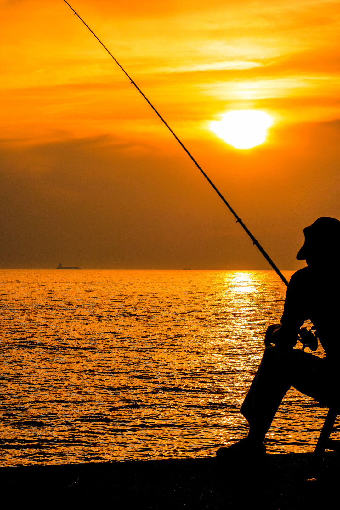 夕陽が空を赤く染める頃、、、岸壁で釣りを楽しむ人や港を離れてこれから漁に向かう漁船、が いい光景を作ってくれました(●^o^●)