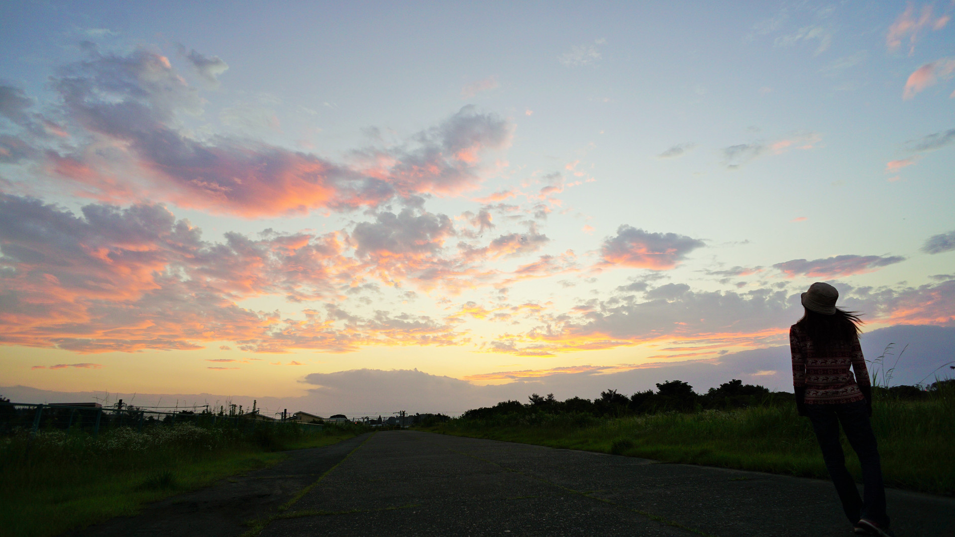夕方の散歩で遭遇した夏の夕焼けです。