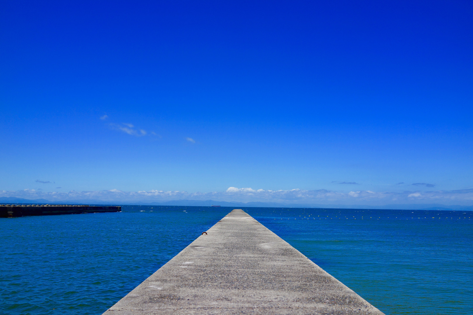 愛知県南知多にある内海海水浴場の防波堤にて。 横幅1m半。風が強いなか、先端までいきました。 落下したら、カメラ台無しになるので、びくびく。 内海はもう8度目?大好きなスポットです。 この防波堤でぼ〜としているのが幸せです。
