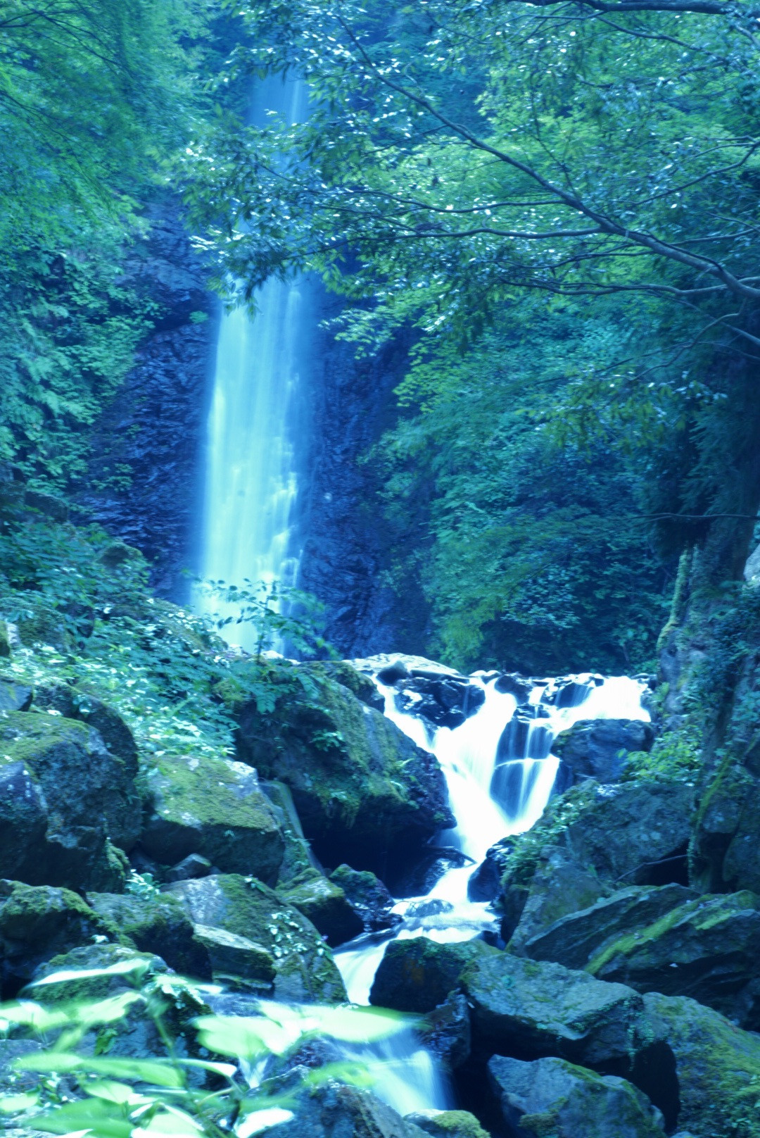 近くの滝 ホワイトバランスをいじって涼しげに。