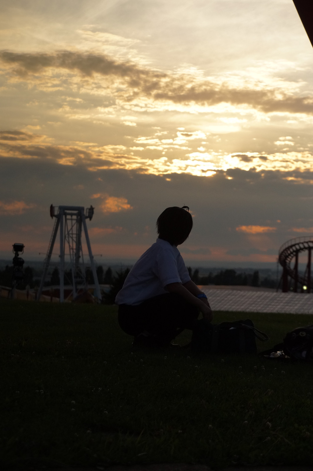 遊園地は賑やかなのに、独りで見上げる夕焼けはなんだかちょっと心に沁みるのです。