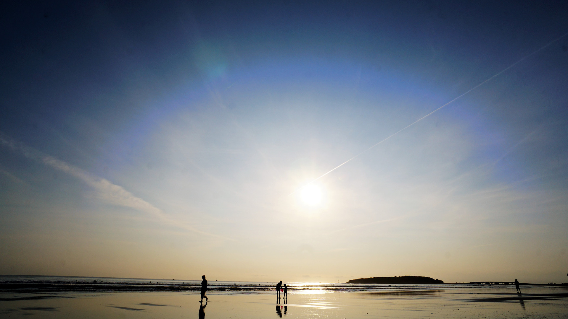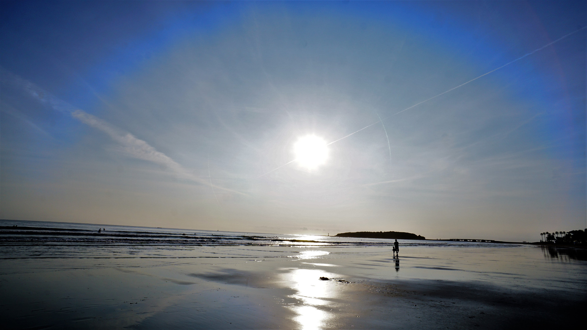 宮崎市の青島海水浴場の風景です。朝陽を浴びる「青島」と「浜辺」がきれいでした。