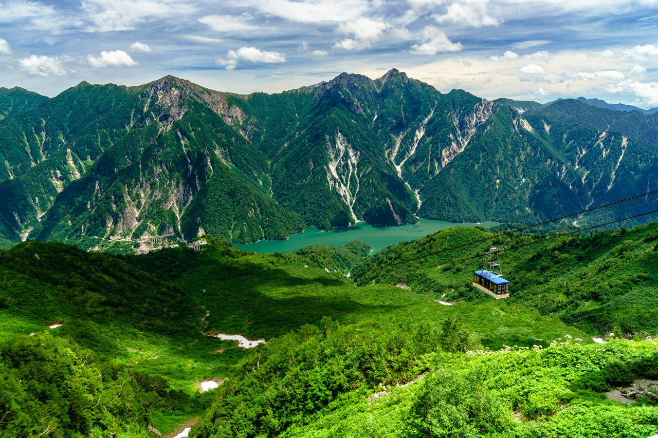 製品情報>My Sony>αcafe>大観峰から見下ろす黒部湖とロープウェイ(moyuさん)