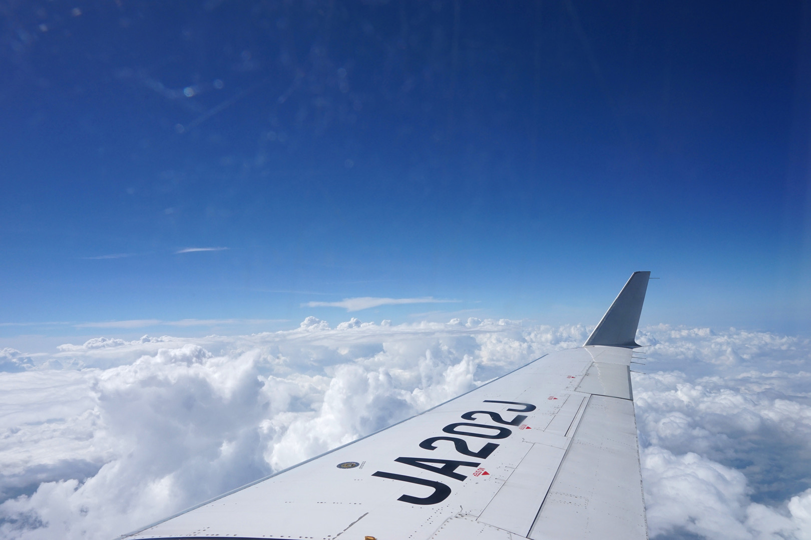 北海道上空を飛行中、雲と青空のコントラストに魅せられ、急ぎバックから取り出し撮影