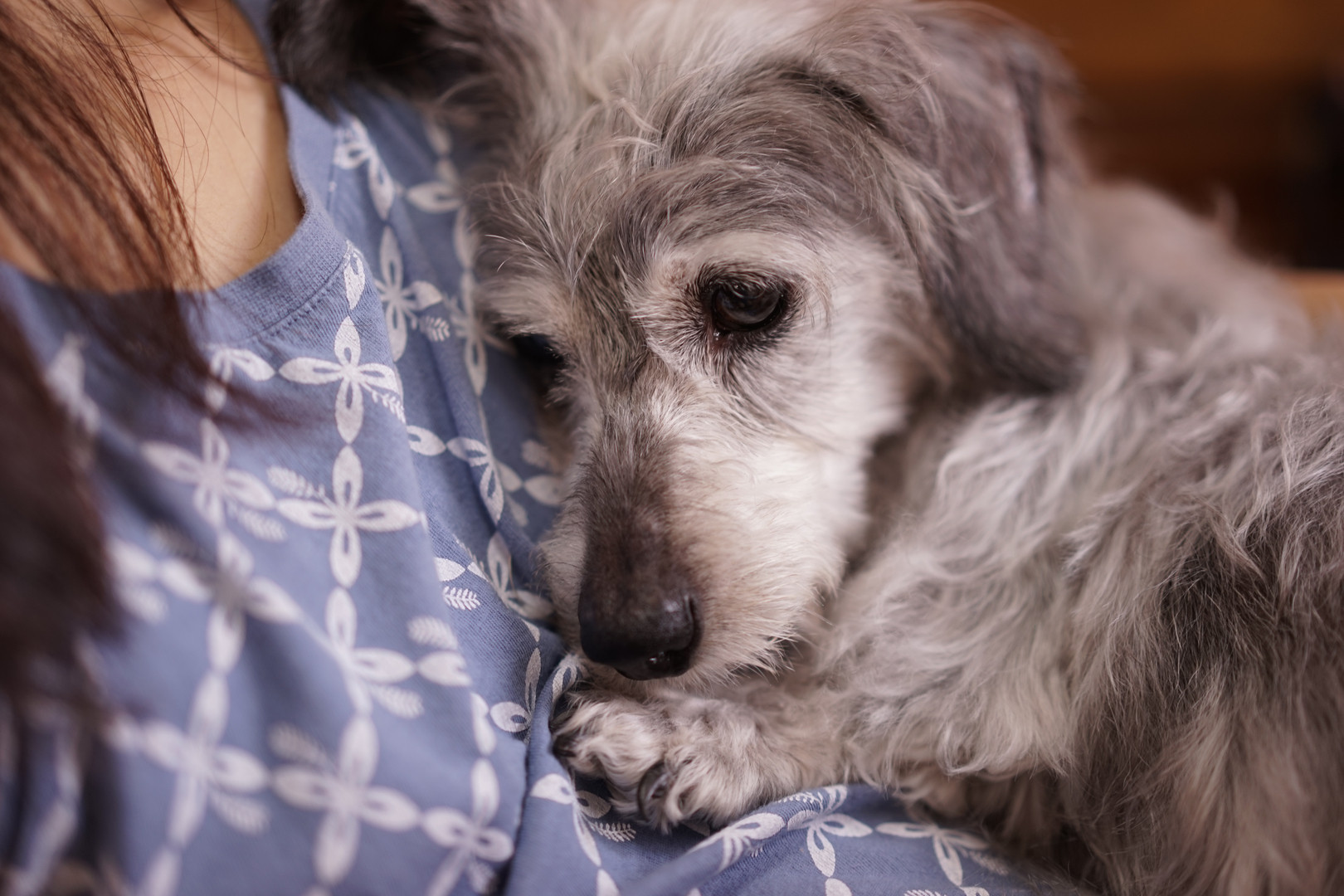 娘にだっこされる甘えん坊の愛犬POKKE