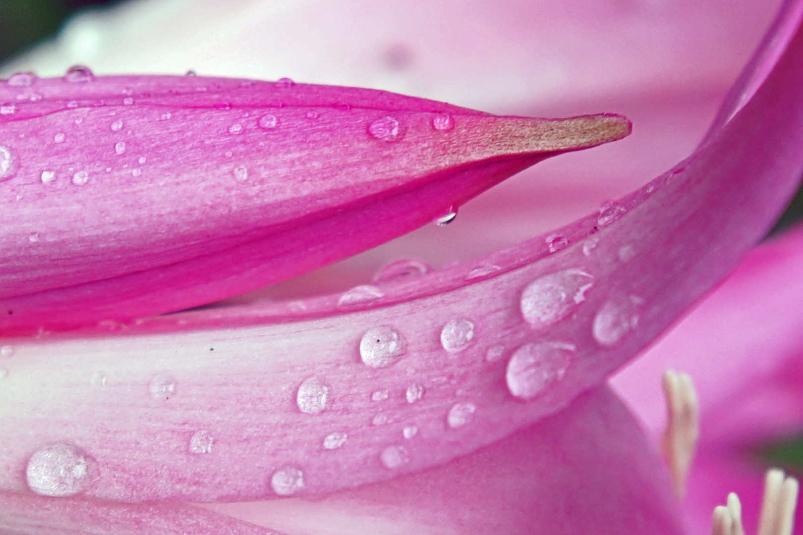 ユリの花に降り立った雨粒たちが思い思いのリズムを奏でます。