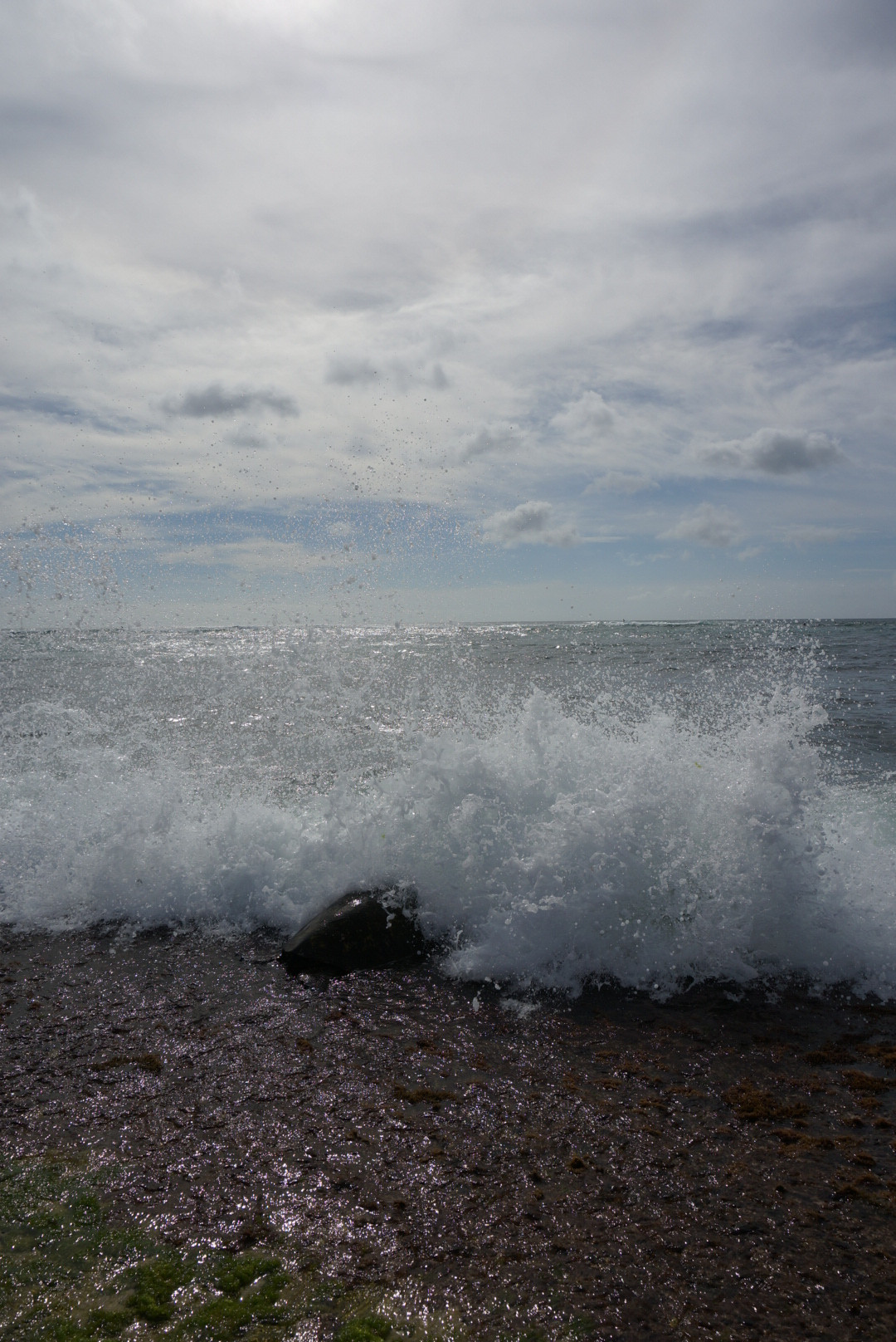 ハワイのノースショアで撮りました。 海ガメが海藻を食べていると…波がザッパーン! それでも一生懸命手で踏ん張ってもぐもぐ食べ続けていました☆