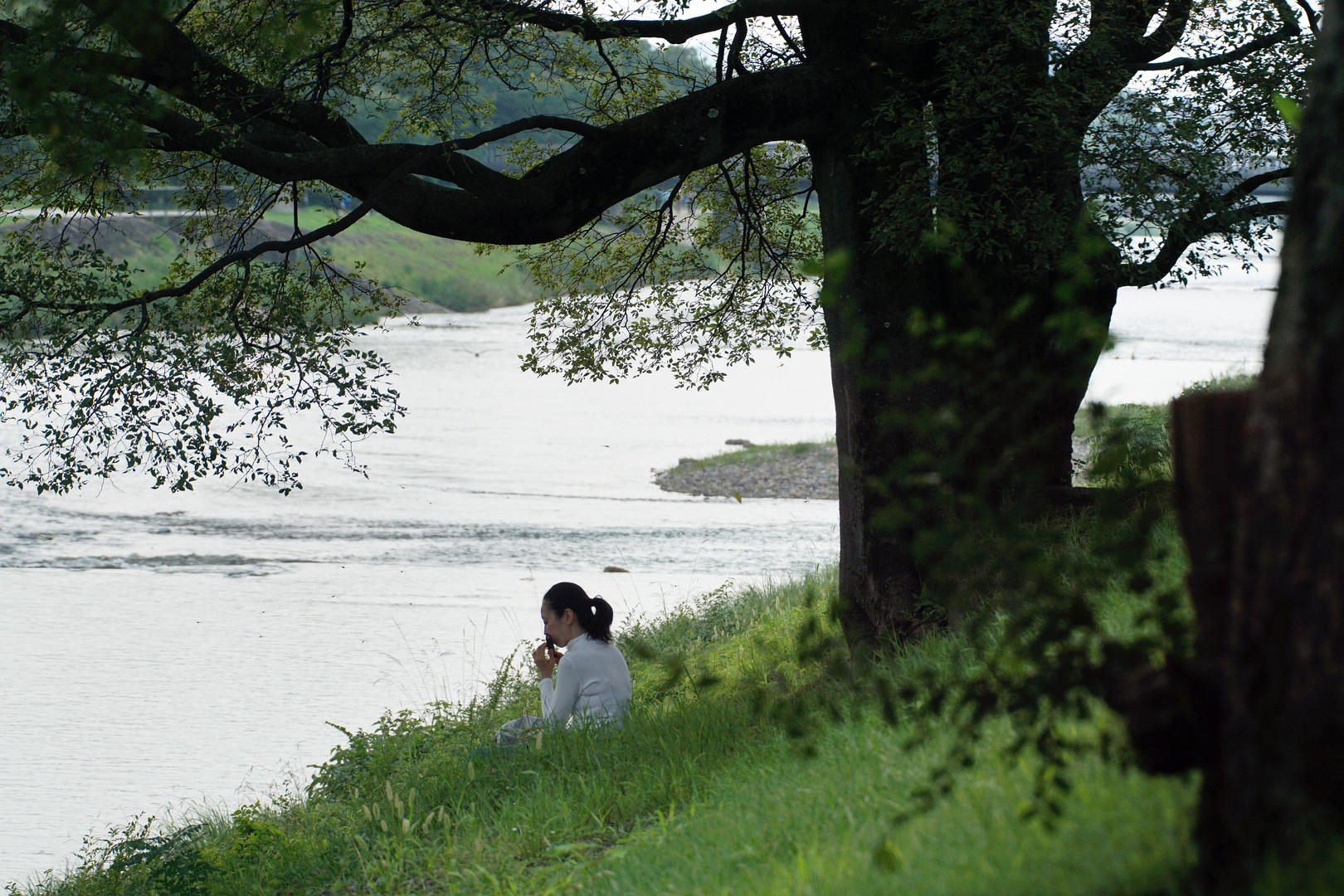 製品情報>My Sony>αcafe>「笛を吹くひと(女性)」 鴨川のほとりにて(波多利呂衛門さん)