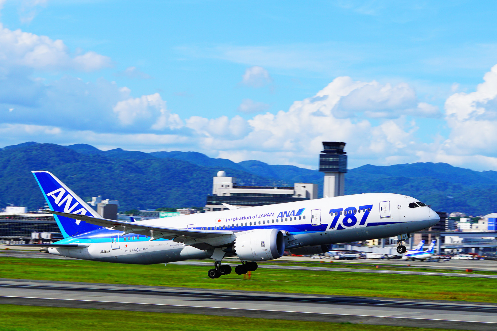 諸問題があり通常は北向きに離着陸する伊丹空港 しかし、年に何回かは南向きに離着陸する事がある その稀にある離発着時に出くわすとやっぱり撮影する側はワクワクします でも運行に携わる方々は大変でしょうけど。。。 そんな逆ラン時に撮影出来た一コマ