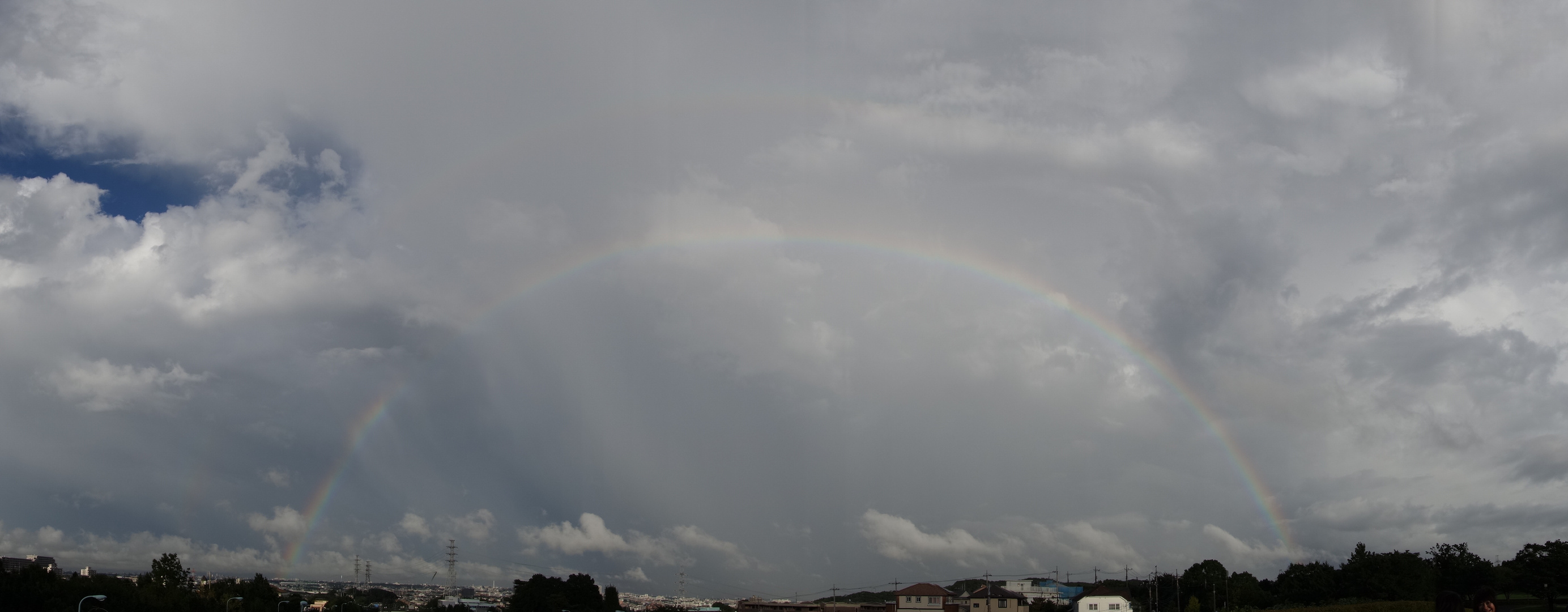 今日は台風の影響でひどい雨でしたね。 そんな雨も夕方には止んで大きな虹が出てまいりました! 大きすぎてDSC-RX100M2では撮り切れませんでしたので スイングパノラマモードで撮影いたしました(^^)