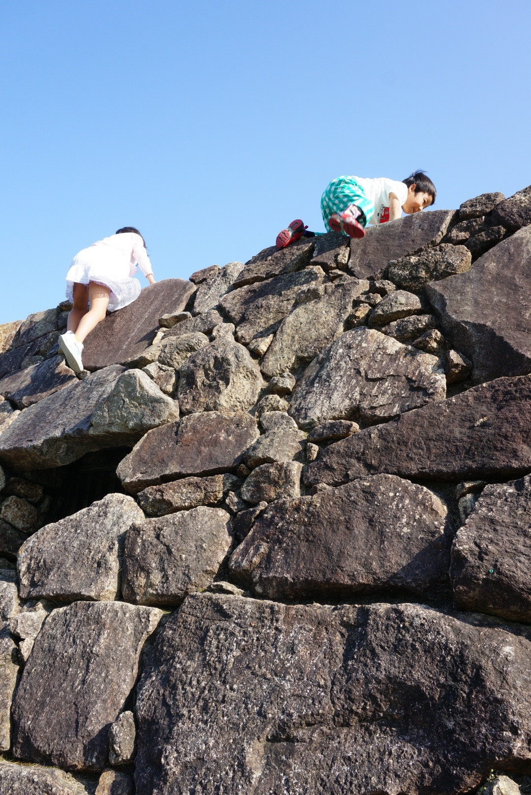 7歳の娘と5歳の息子が、競うように石垣を登っていきました