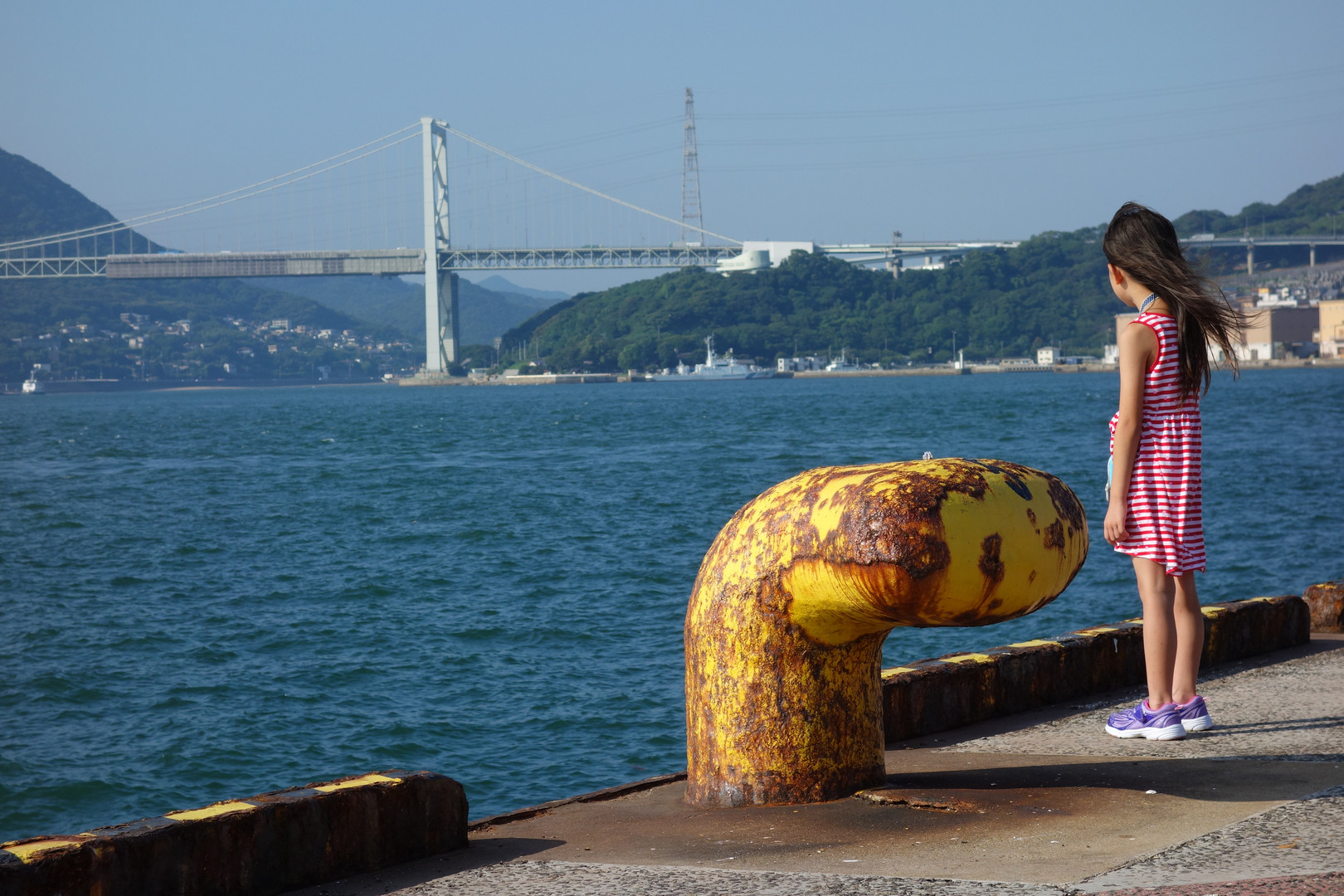 門司港から関門橋をバックに撮影しました。