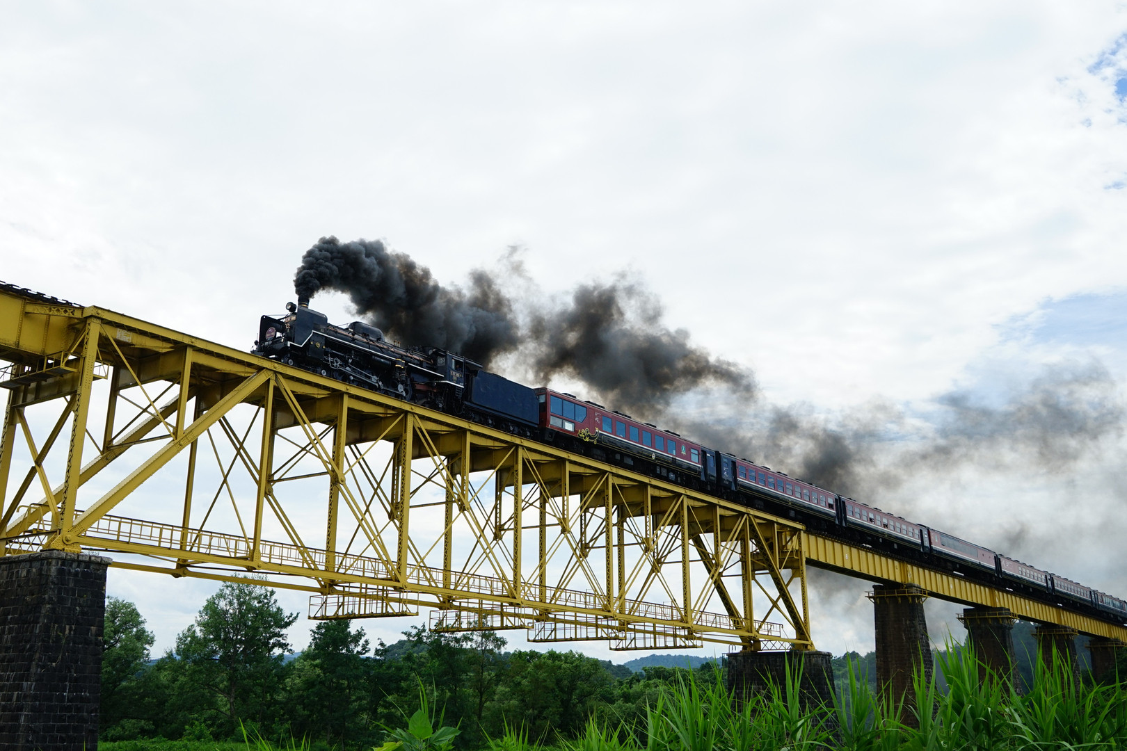 磐越西線の一ノ戸川橋梁を渡るSLばんえつ物語号(福島県喜多方市)