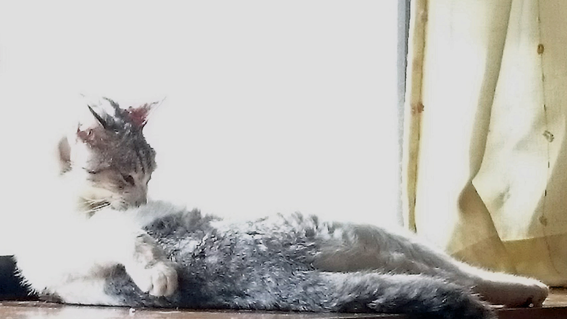 余命宣告を受けたシロが出窓で毛繕いしている心が少しだけ安らいだ時でした。