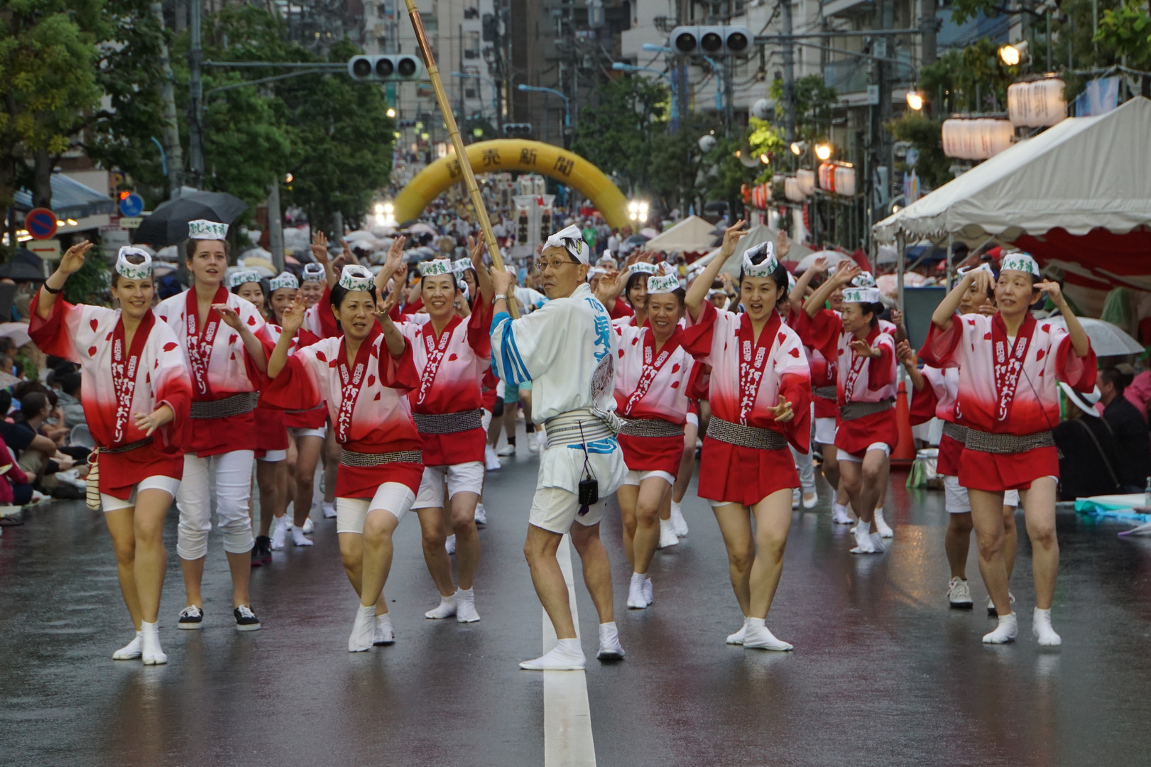外人さんもいる雨中の舞