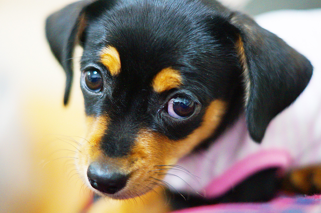 生まれて一か月のミニチュアダックスとチワワのミックス犬です。名前は「あんこ」と命名。うちにはもう一匹、ミニチュアダックスの「きなこ」も居ます。