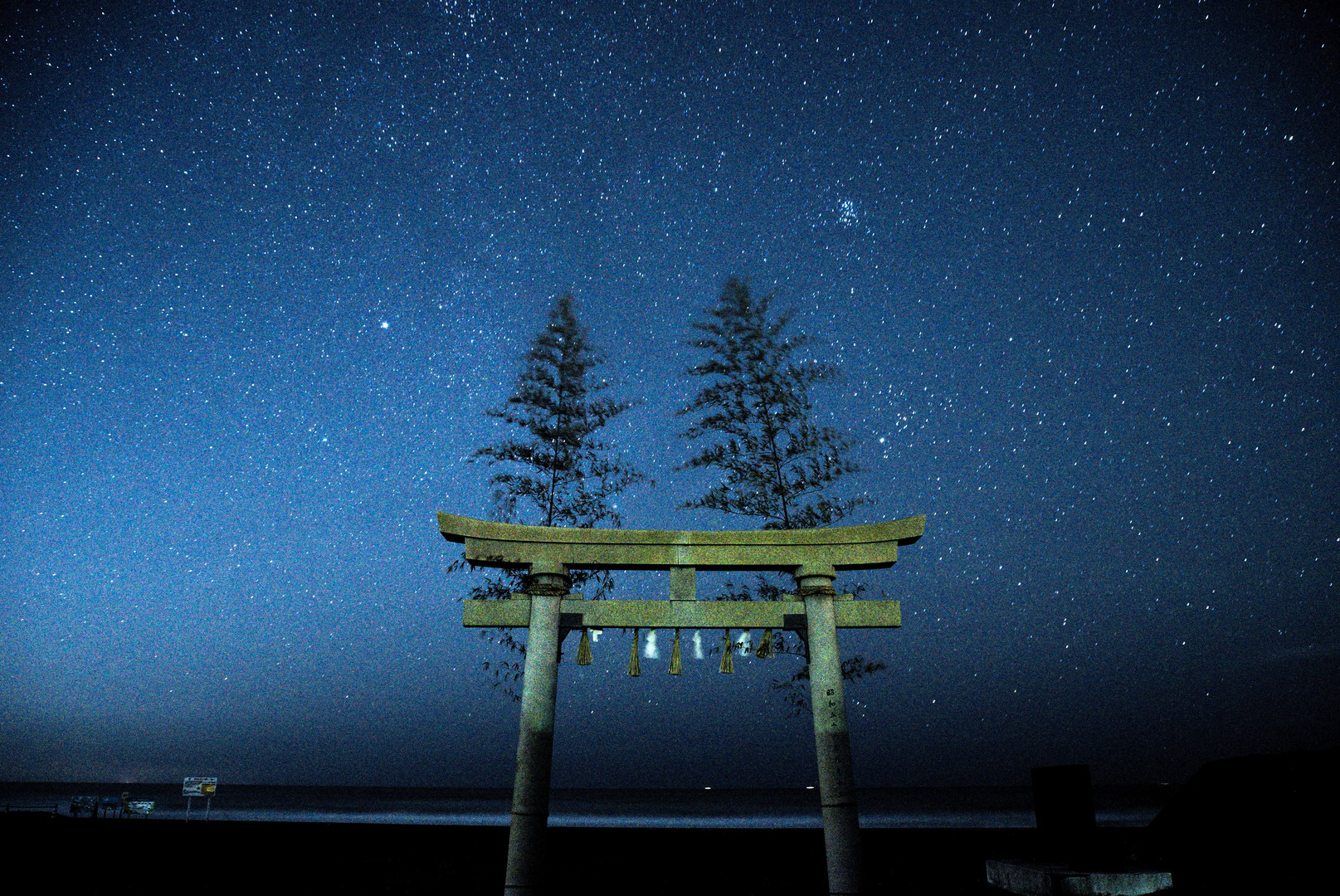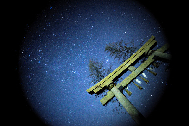 九十九里浜東浪見海岸で撮った星空です。 ちょうど神事の時期だったようです。
