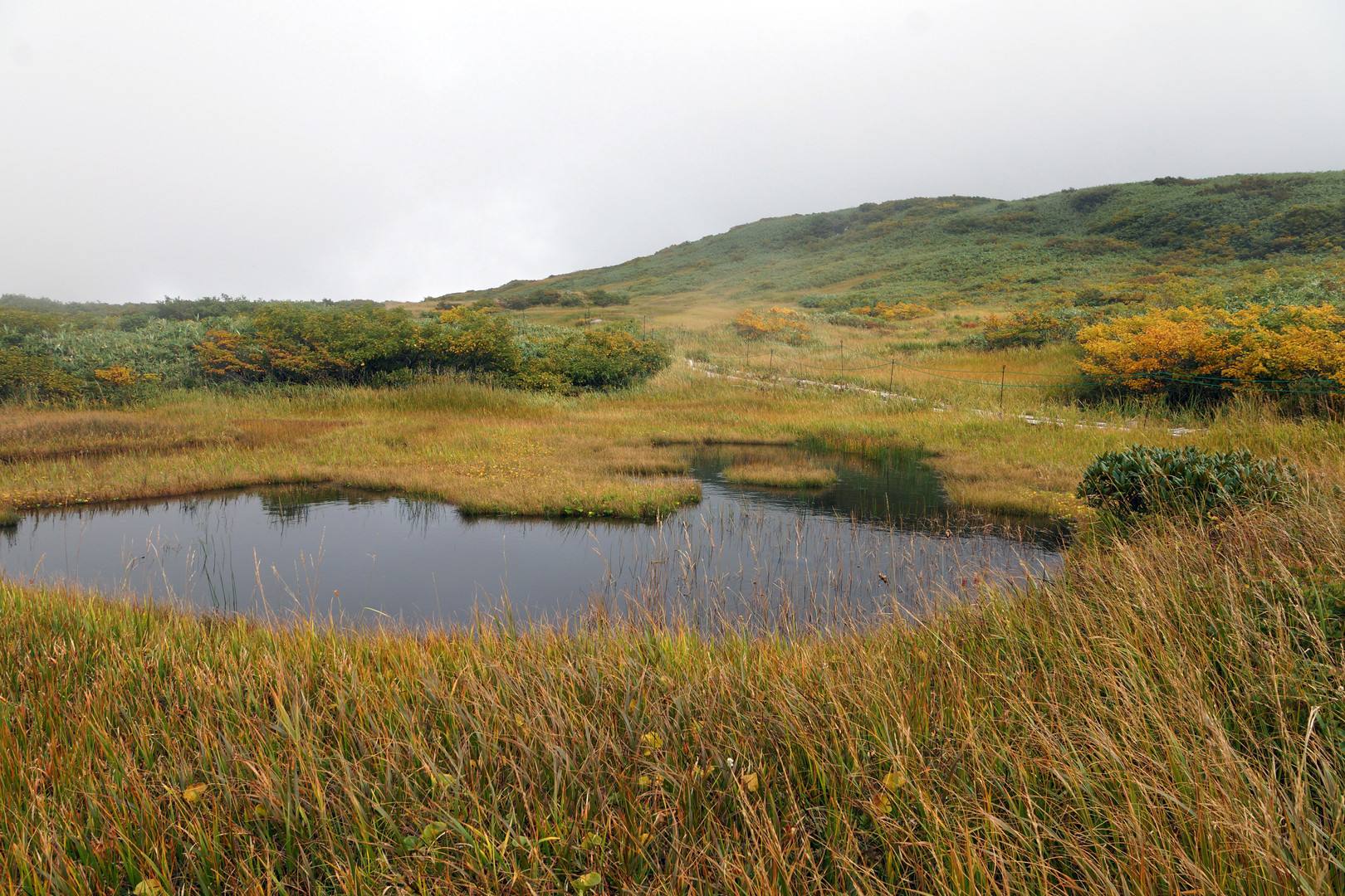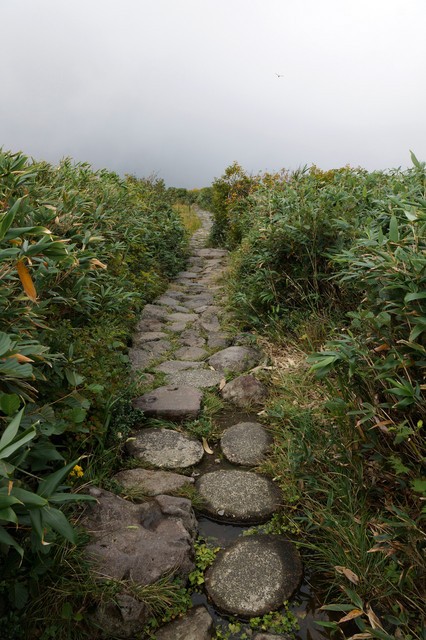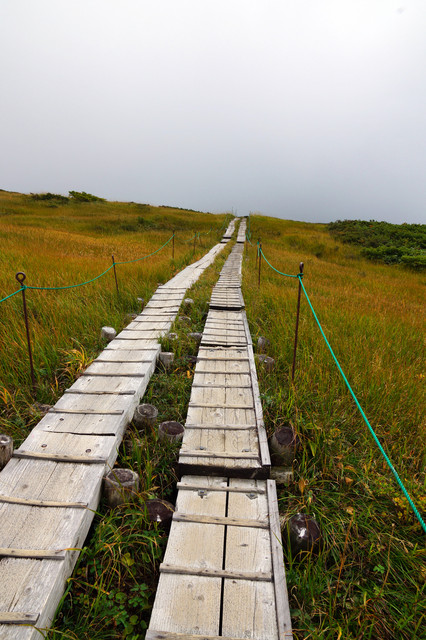 月山の八合目、弥陀ヶ原湿原にて。 下界は青空なのに、月山は雲の中。 青い空を背景に撮りたかったけど、またの機会に。 今度は紅葉の頃に。