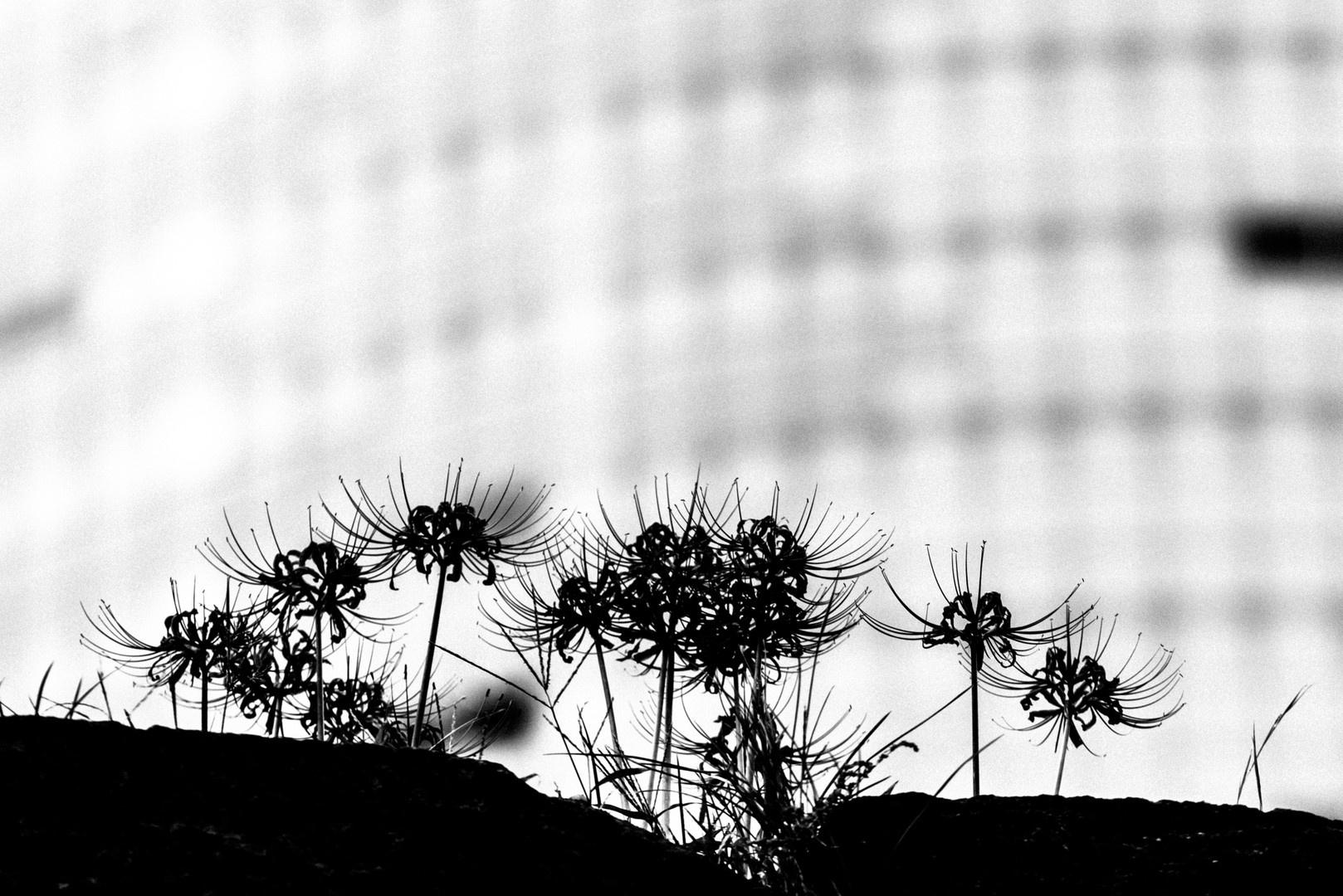 浜離宮の石垣の上。奥は汐留・電通ビル。 不思議な空間だから 色を奪って影絵にしてみた