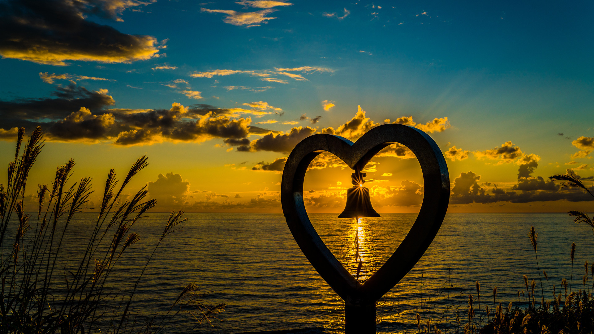 黄金色のダイヤモンドハート♡ 色んな角度から撮影し、この幸せの鐘を鳴らすことが出来ました♪ 苫前町にあるマイナーなモニュメント「夫婦愛の鐘」での夕陽。 案内看板も無く、探すのに一苦労・・・ お陰で、この景色を1時間半ほどの滞在中独り占め~ が、ひとりも寂しいわな(笑)