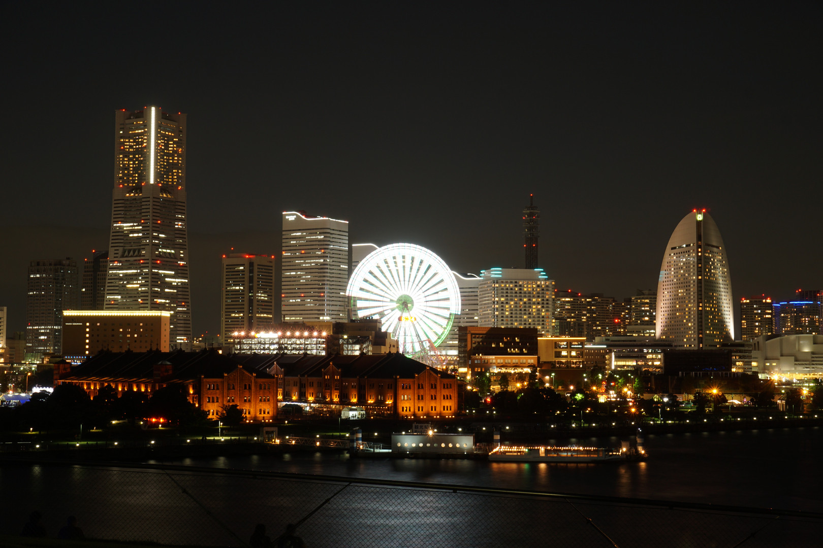 高層ビルと観覧車の明かりに赤レンガのライトアップも相まってとっても綺麗な景色でした!