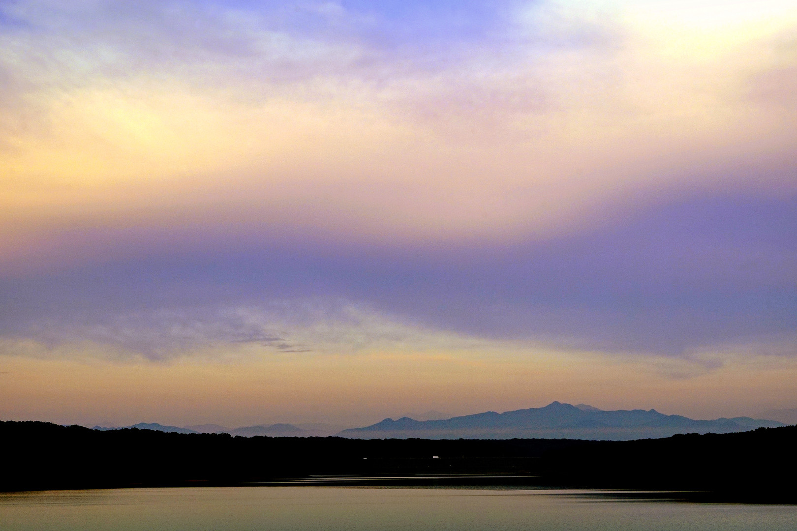 今朝は雲が若干厚く、朝焼けは無理かなと思いましたが(^_^.) 妙な具合に色づきました♪ 紫の帯が綺麗でした(^。^)
